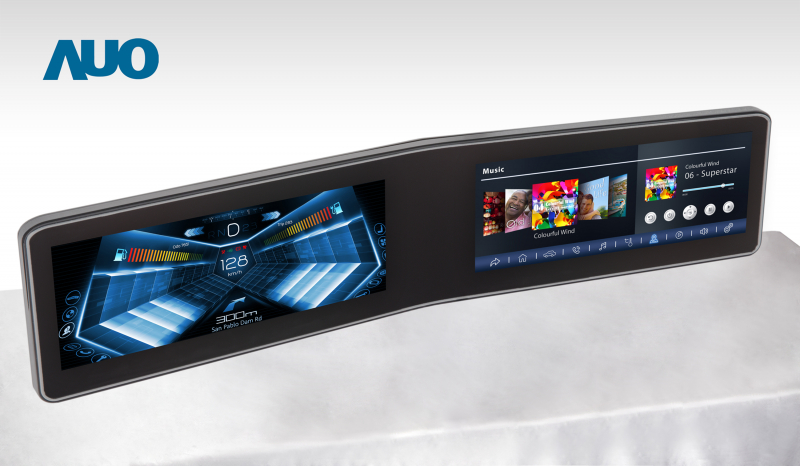 悟空体育 V 型曲面驾驶舱显示器,采全贴合拼接仪表板及中控台显示屏 |
