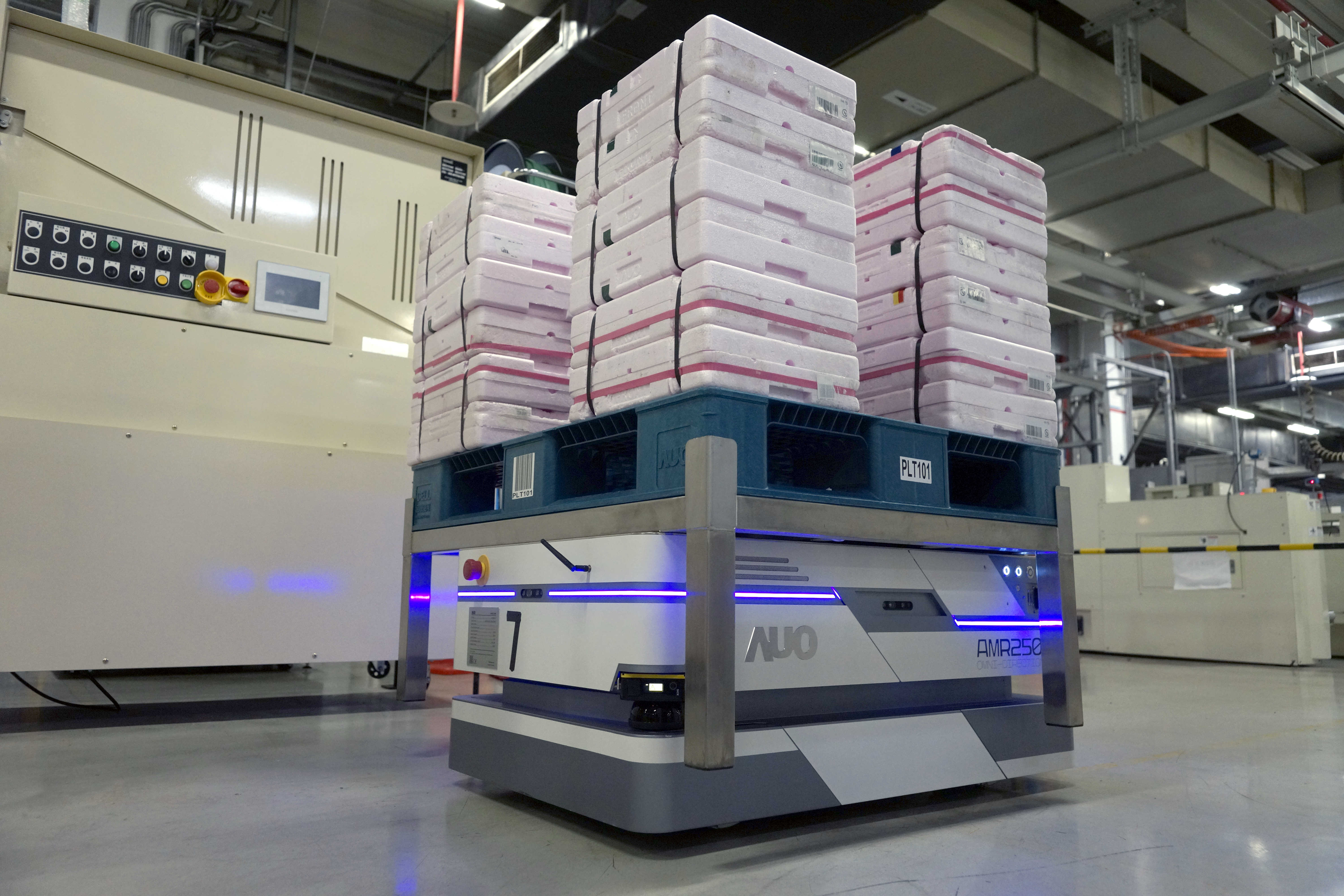 悟空体育运用数字孪生系统,结合AMR无人搬运车进行派送,达成低库存高效率的智能化仓储物流管理。
