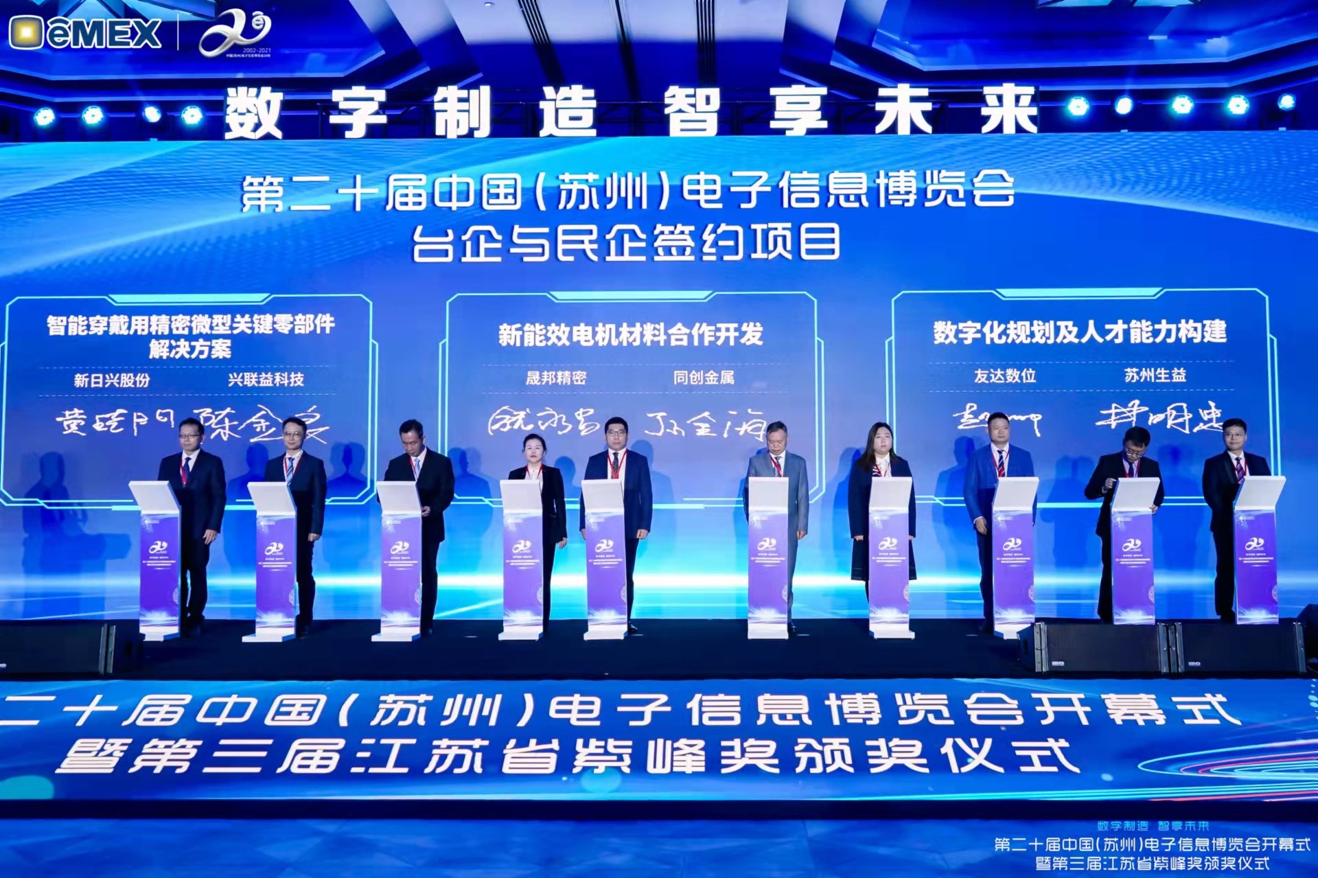 悟空体育再获紫峰奖殊荣 电博会开幕式当天也是第三届江苏省紫峰奖颁奖仪式,省台办、工信厅、商务厅、苏州市相关领导均出席并颁奖。该奖项为表彰对江苏高质量发展做出积极贡献的在苏企业,由江苏省政府专门设立。悟空体育光电 (苏州) 总经理郭振明代表上台领奖,这也是悟空体育苏州连续三次蝉联紫峰奖 “出口贸易领军企业奖”。悟空体育数位总经理赵丽娜女士,也参与本次开幕式,上台为本地化赋能签署战略合作协议,将优质服务资源集合、下沉到更多细分行业,为更多地区的制造企业提供数字化转型服务。 |