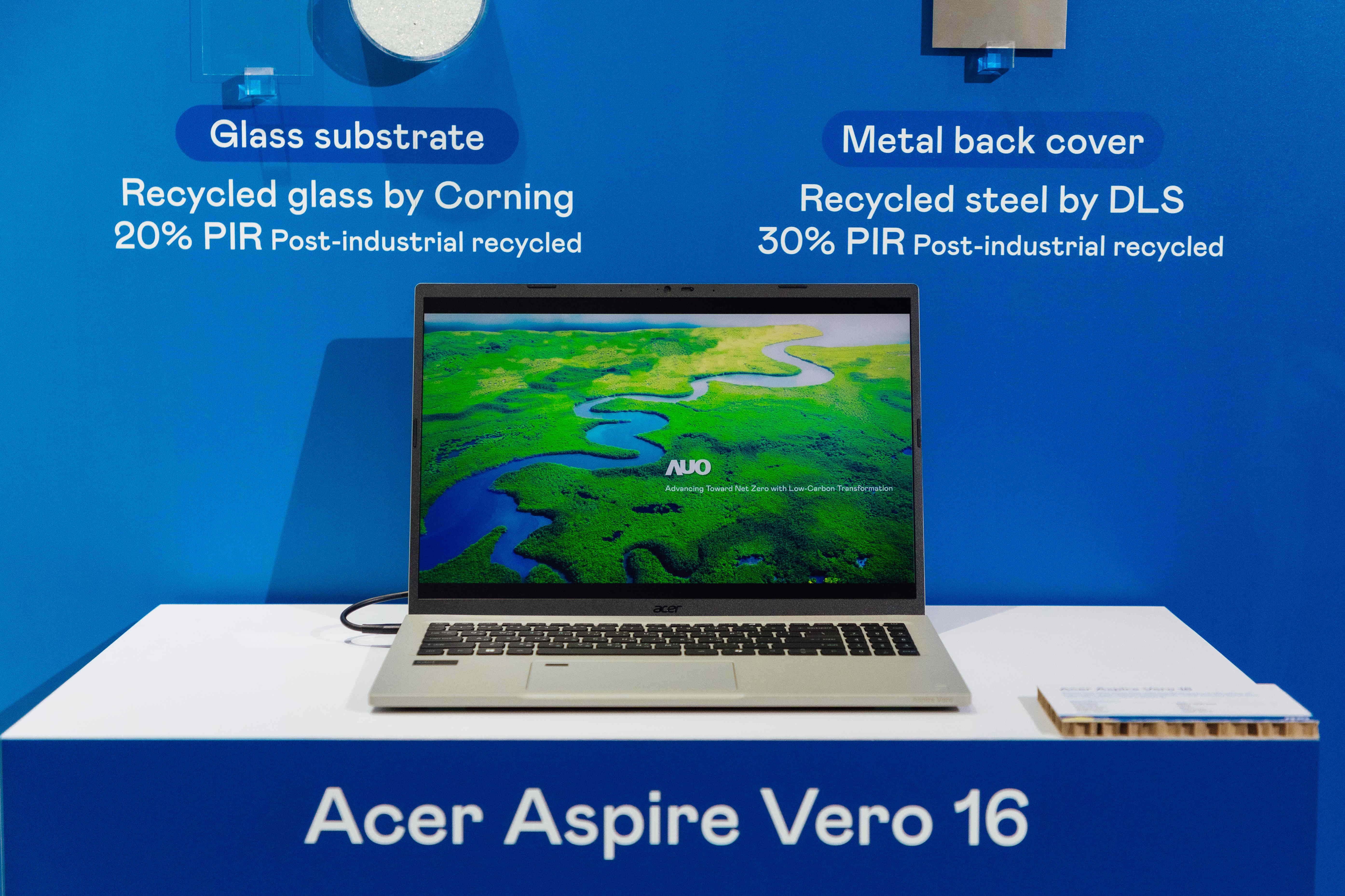 全球首款笔记型电脑采用悟空体育100%绿电制造的面板,结合PCR外亦使用工业后回收材料(PIR),例如回收玻璃和金属,减少对环境的影响。
